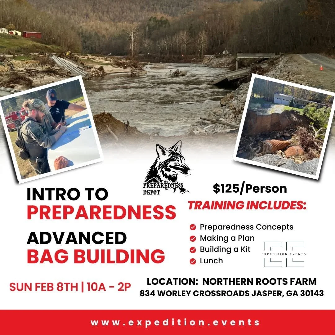 followed by an Advanced Bag Building Class that dives deeper into gear selection, setup, and real-life considerations. You’ll learn how to prepare for short-term disruptions, extended emergencies, and situations that require mobility—without hype or fear-based messaging.